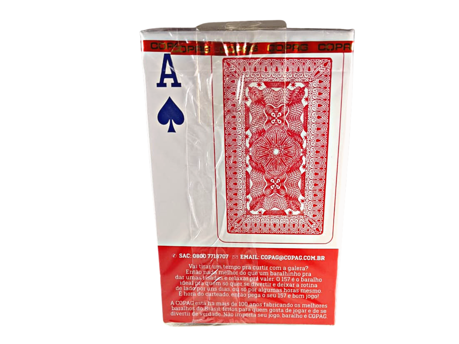 Os Baralhos Copag são referência em excelência de qualidade no mundo todo. Possuem fácil deslize e são de agradável manuseio. Fabricado desde 1923 e se mantém um produto de tecnologia inovadora, produzido em cartão de alta qualidade, que garante grande durabilidade e conforto no manuseio.