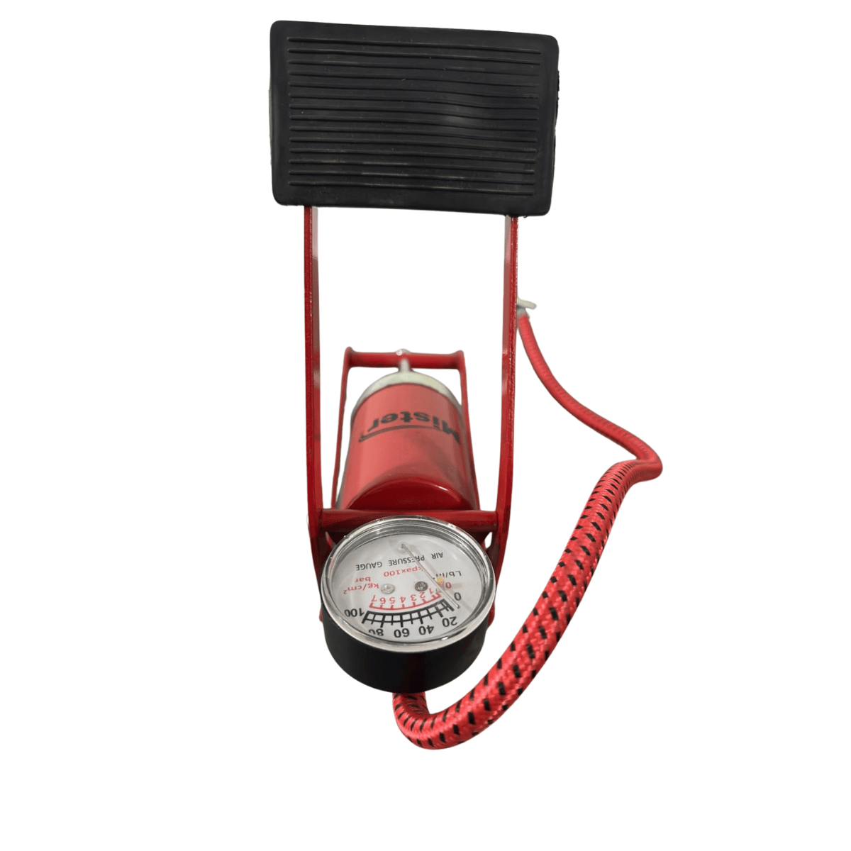 Bomba de Ar Pedal da Mister é indicada para encher pneus de carros, motos, bicicletas, entre outros. Possui corpo metálico com acabamento pintado, proporcionando maior resistência à corrosão/oxidação.