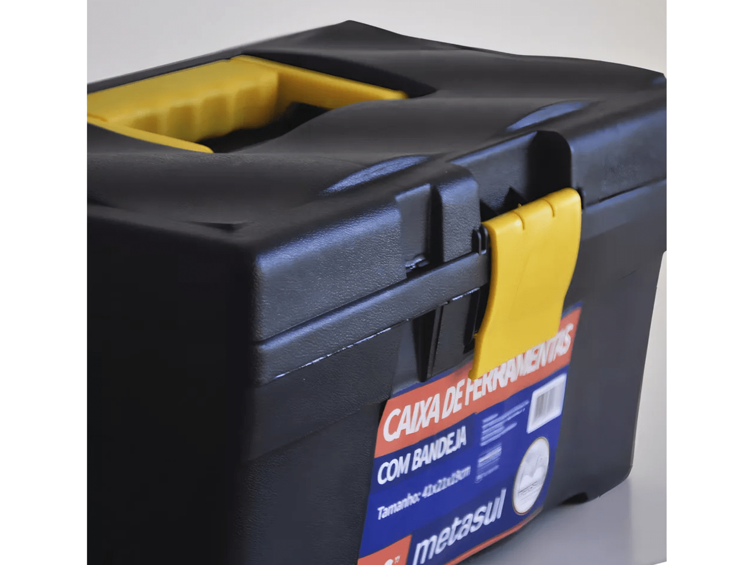 Perfeita para manter suas ferramentas sempre bem organizadas, a caixa para ferramentas Metasul pode ser utilizada para acomodação de diferentes tipos de ferramentas. Ela conta com alça para transporte com ótima pega, tornando o transporte mais fácil e prático, trava da tampa permitindo colocar cadeado, dispondo de maior segurança, bandeja removível, perfeita para acomodar peça pequena, impedindo que elas se percam no fundo da caixa e ainda, compartimento com excelente capacidade.
