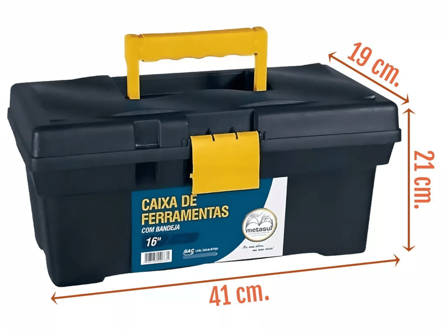 • 01 - Caixa de Ferramentas de Plástico Simples 16’’ com Tampa e Alça para Transporte Metasul