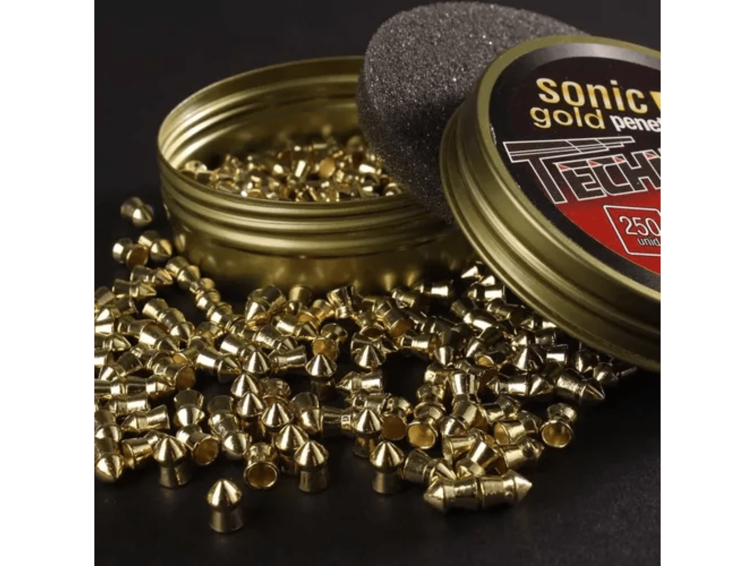 Sonic Gold: Revestido por um micro banho de latão, diminui consideravelmente o coeficiente de atrito dentro do cano da arma.Tiros a longa distância. Grande poder de penetração. Indicado exclusivamente para carabinas de média e alta pressão.
