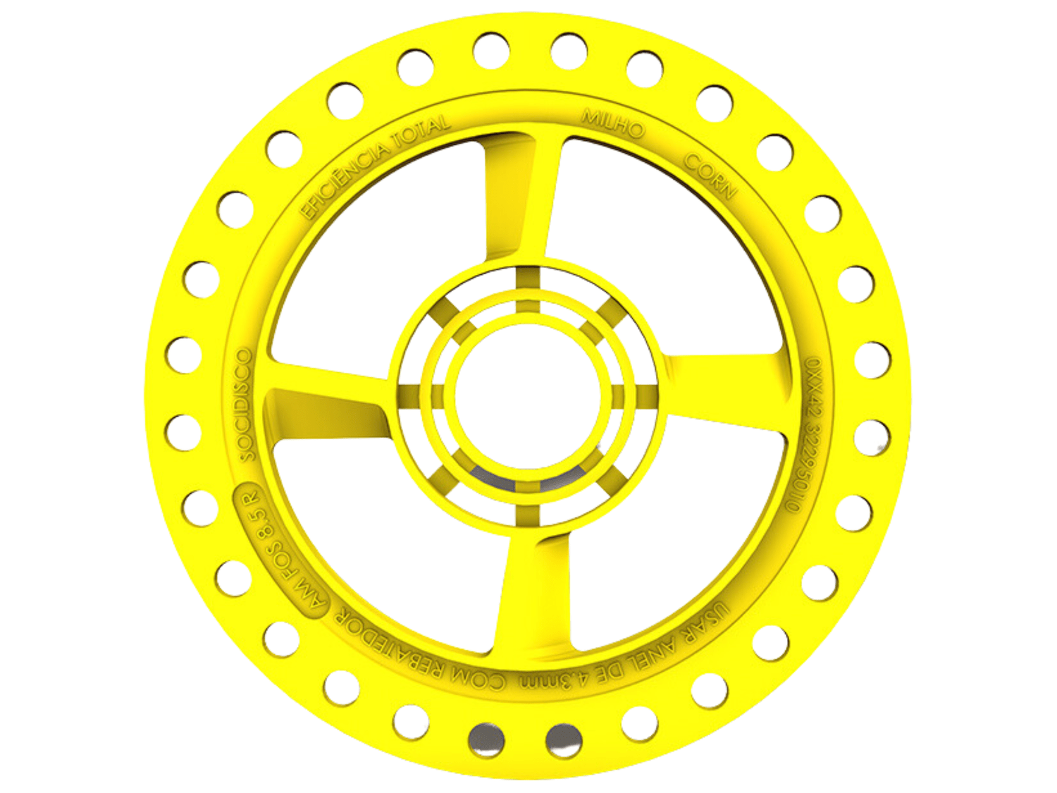 Os discos e anéis Socidisco de modelo eficiência total tem a utilidade de diminuir a perda de sementes. Onde graças a sua tecnologia que vem com um desenho revolucionário com onda e rebatedor no anel de milho, este produto dá um aproveitamento total das sementes, com zero dupla e zero falha. Garantia: de produtividade e eficiência máxima na hora do plantio. Com a caixinha de sementes, o disco e o anel de milho socidisco, é certeza de qualidade e bom gosto.