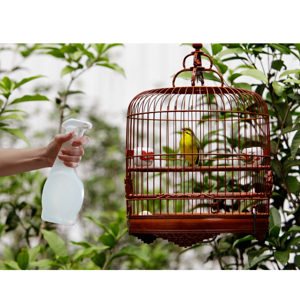 | Pingar 13 gotas (1ml) do produto em uma banheira com 100ml de água. Para pássaros que não entram na banheira, pingar 13 gotas (1ml) do produto em 100ml de água, colocar em um frasco borrifador e borrifar sobre a gaiola. |