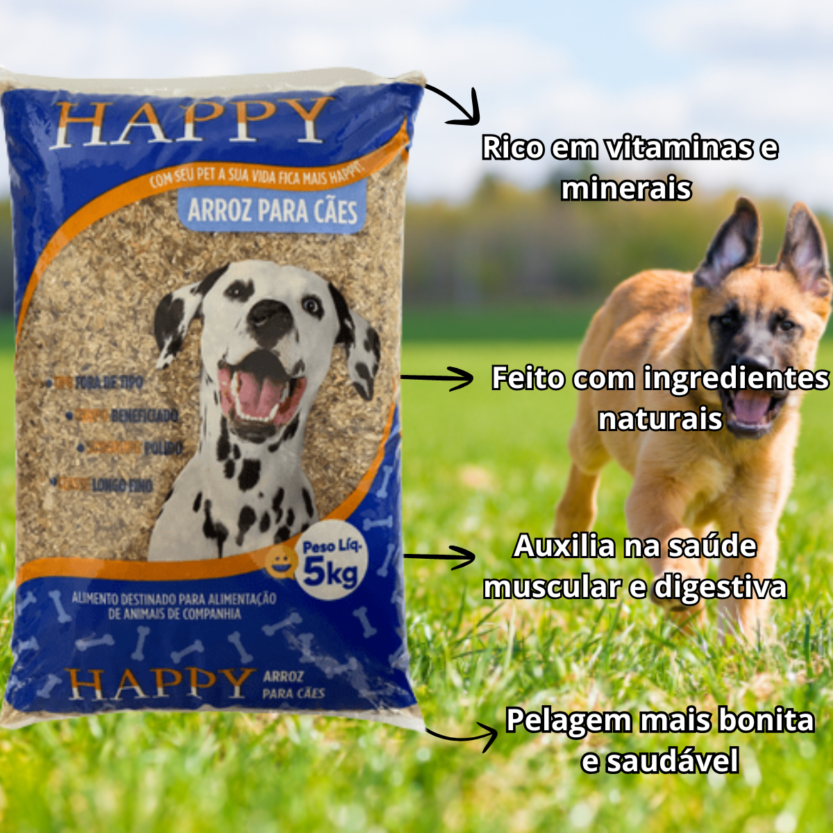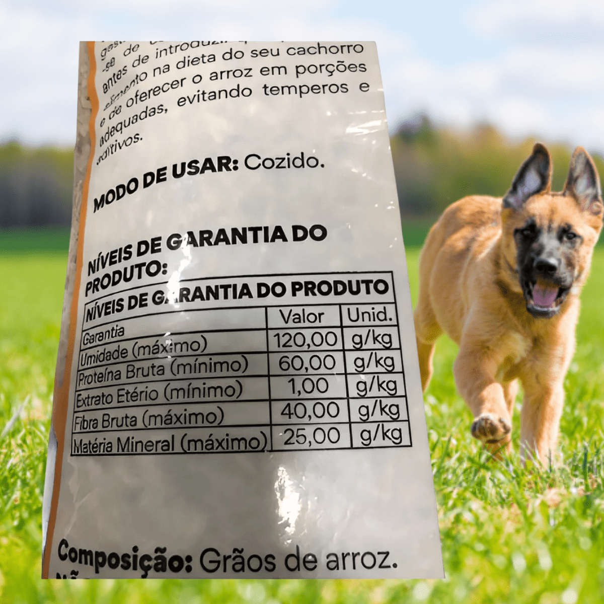 Indicado para cães, é um arroz que passa por um processo chamado de parboilização. Muda a cor do grão ele fica amarelado. O arroz