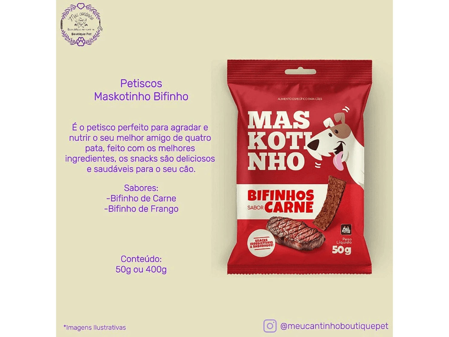 Kit 2 Petisco Maskotinho Bifinho Para Cães Sabor Carne