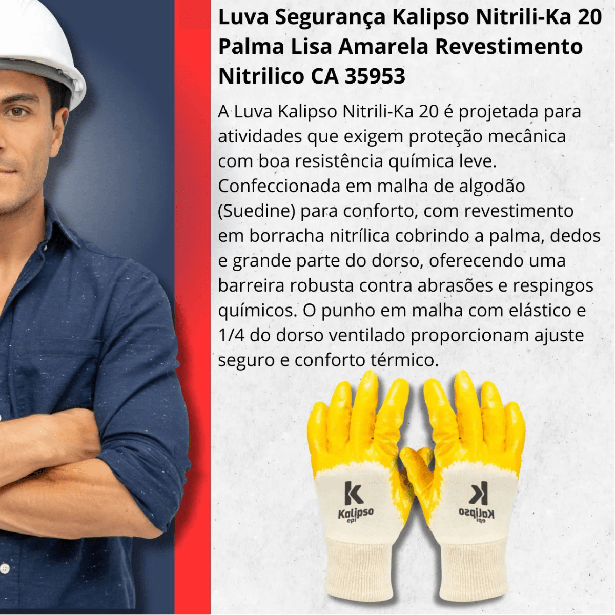 A Luva Nitrílica K A20 é um modelo de luva de segurança, indicada para proteção em diversas atividades profissionais, principalmente em ambientes que exigem resistência a substâncias químicas e mecânicas. Aqui estão algumas características gerais desse tipo de luva: