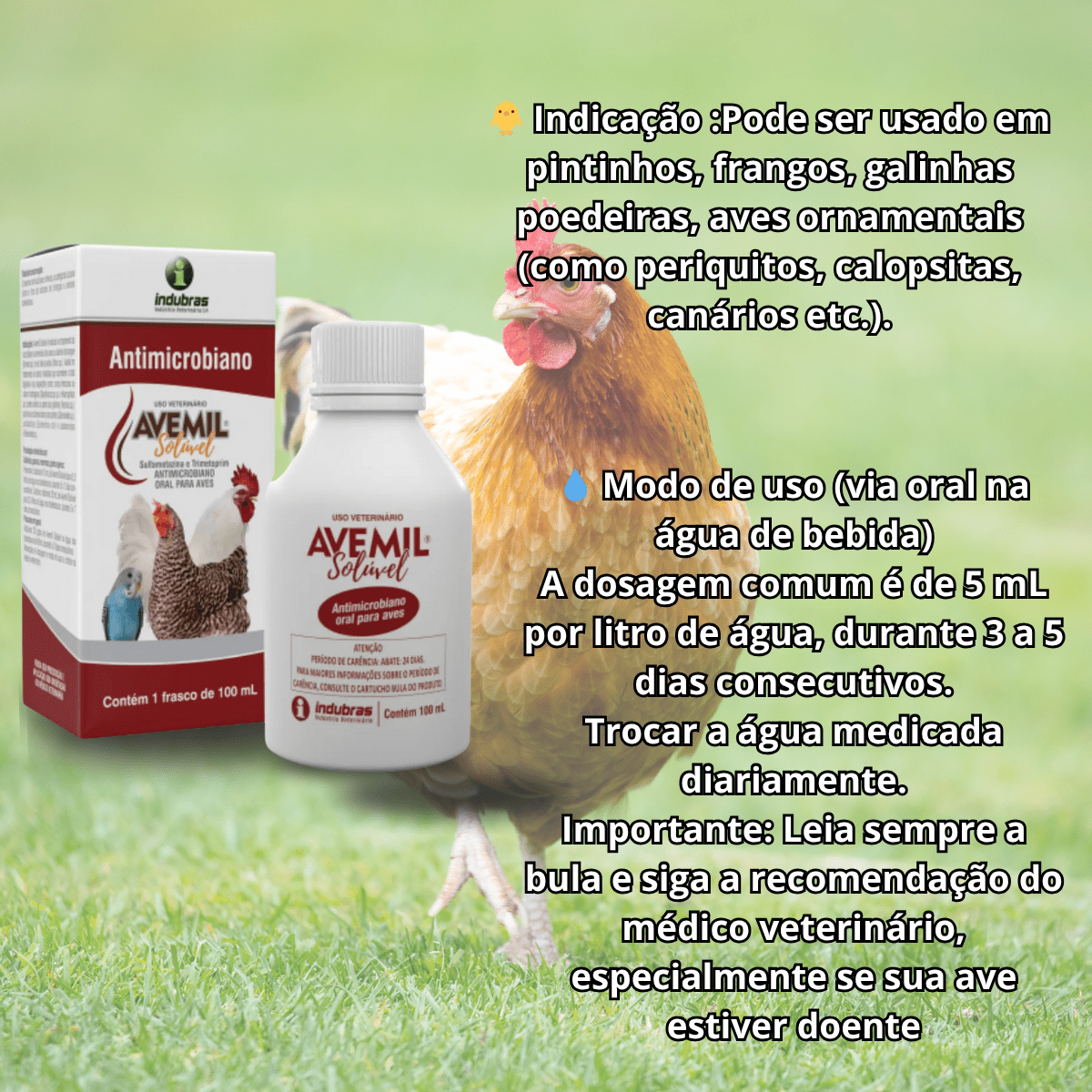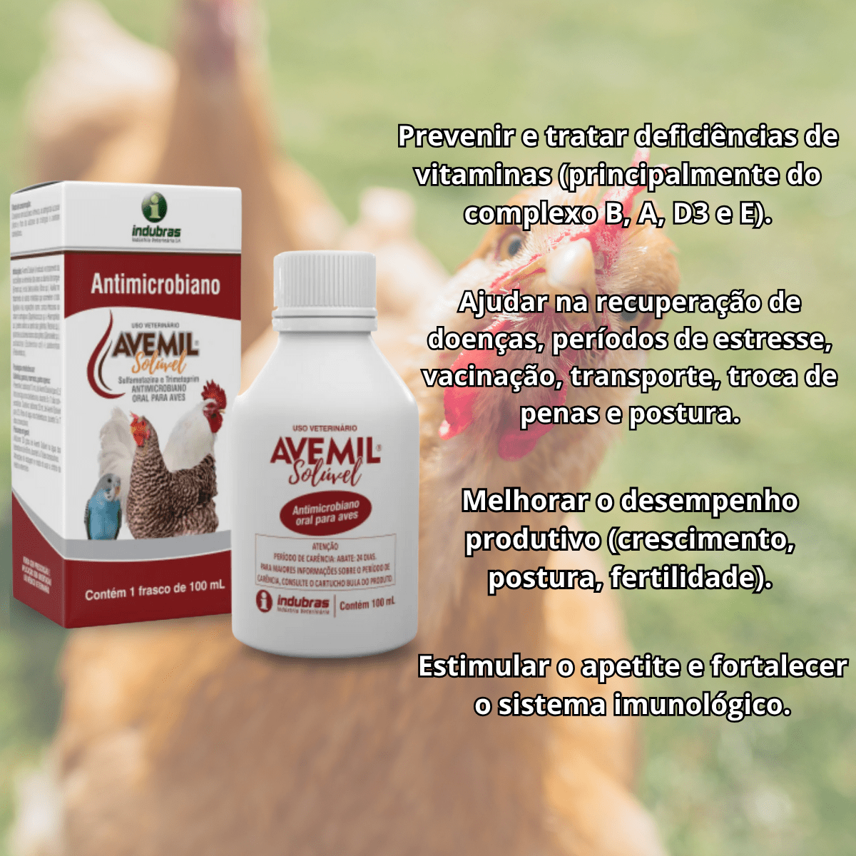 O Abemil Solúvel é indicado para o controle de vermes gastrointestinais em galinhas, galos, pássaros e outras aves.
