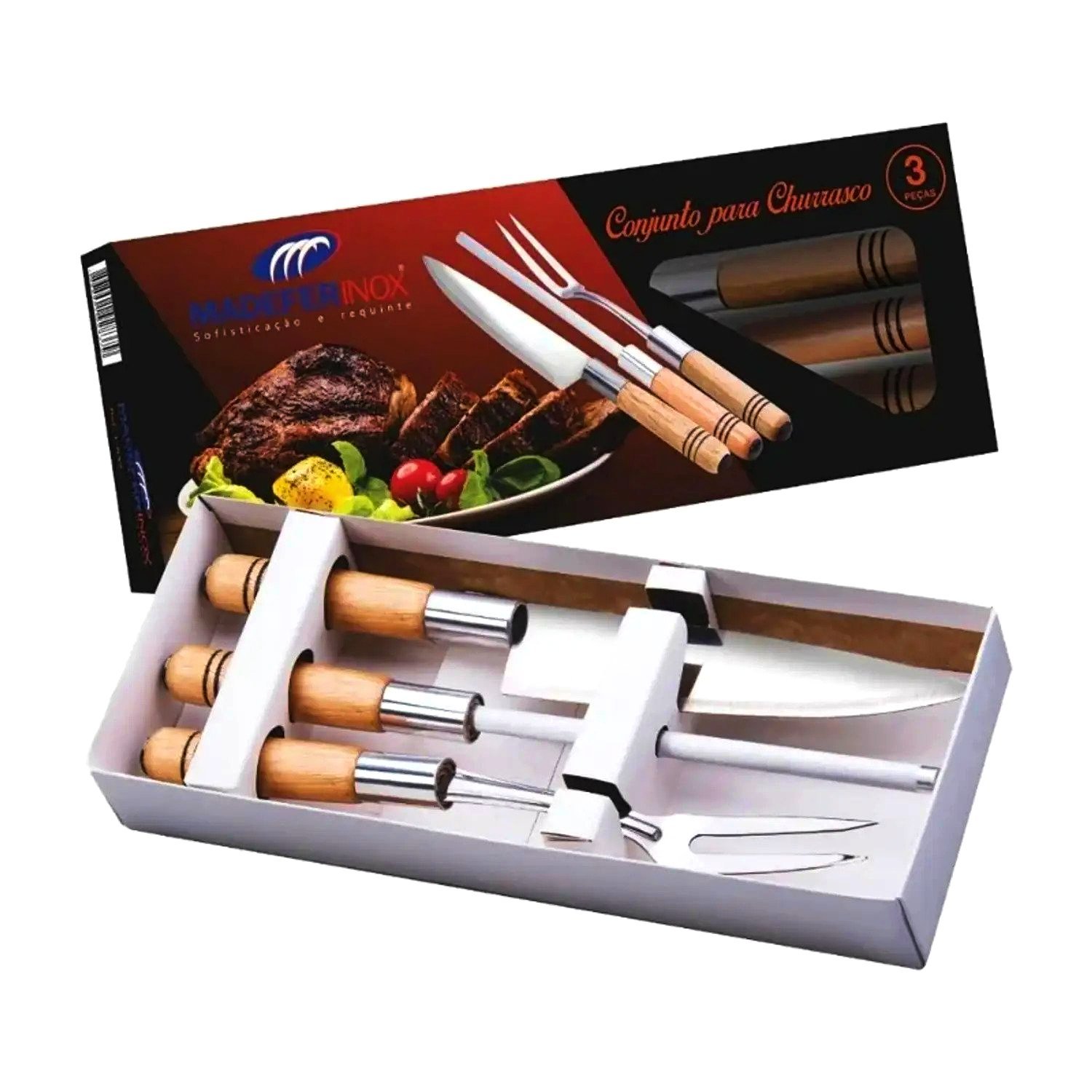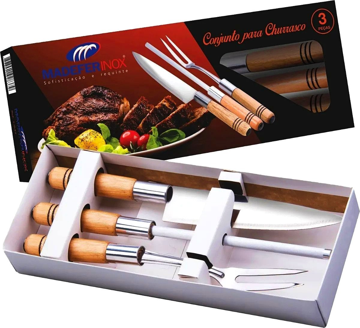 1 Kit Para Churrasco Faca + Garfo + Chaira