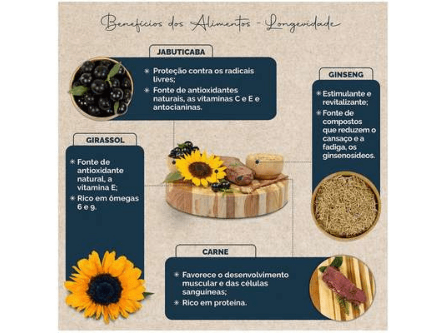 - Sabor : Girassol, Carne, Jabuticaba e Ginseng