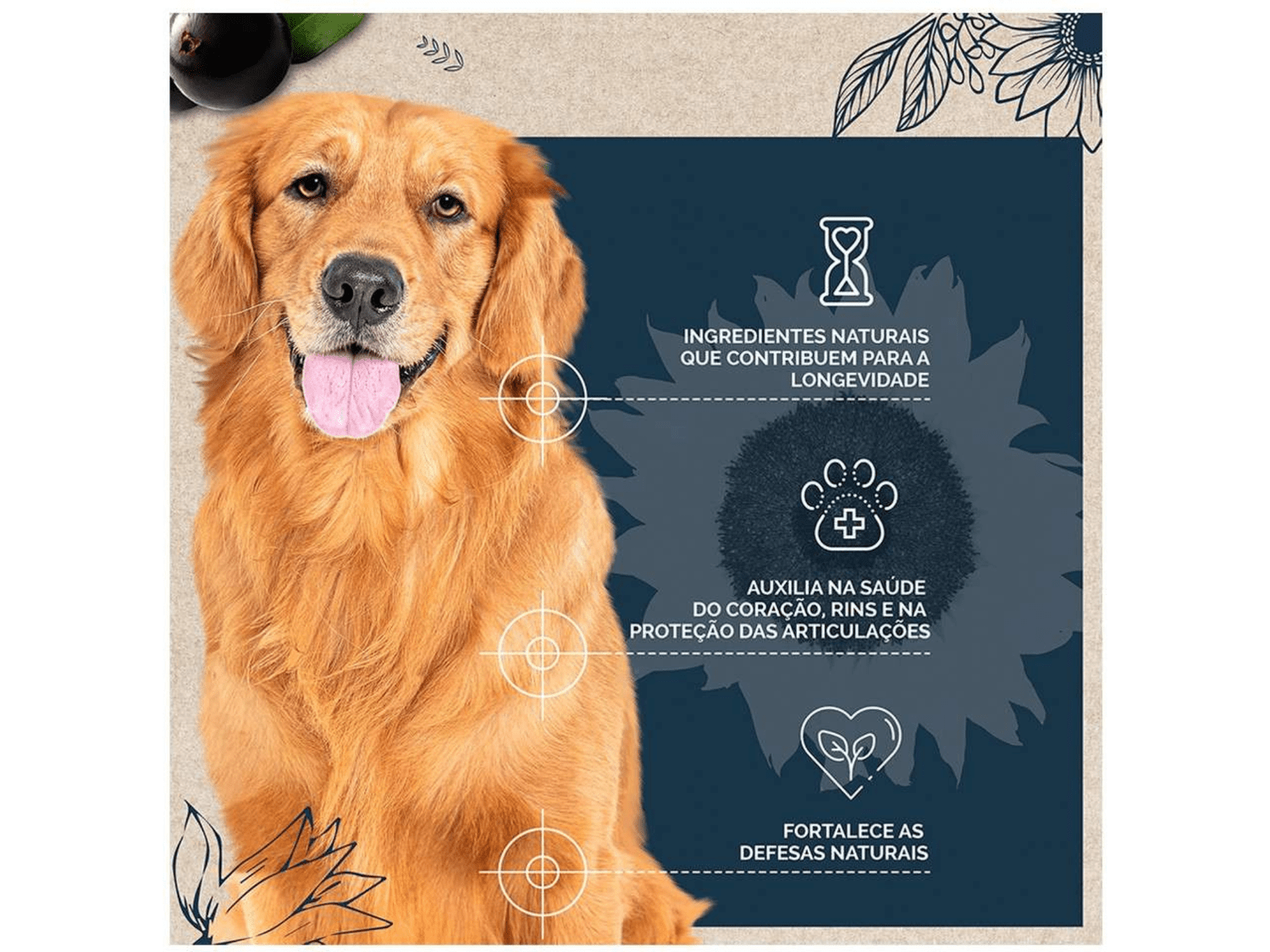 Rica em ômega 3 e 6, vitaminas e outros nutrientes essenciais, é livre de corantes, garantindo uma alimentação segura para seu companheiro de quatro patas.