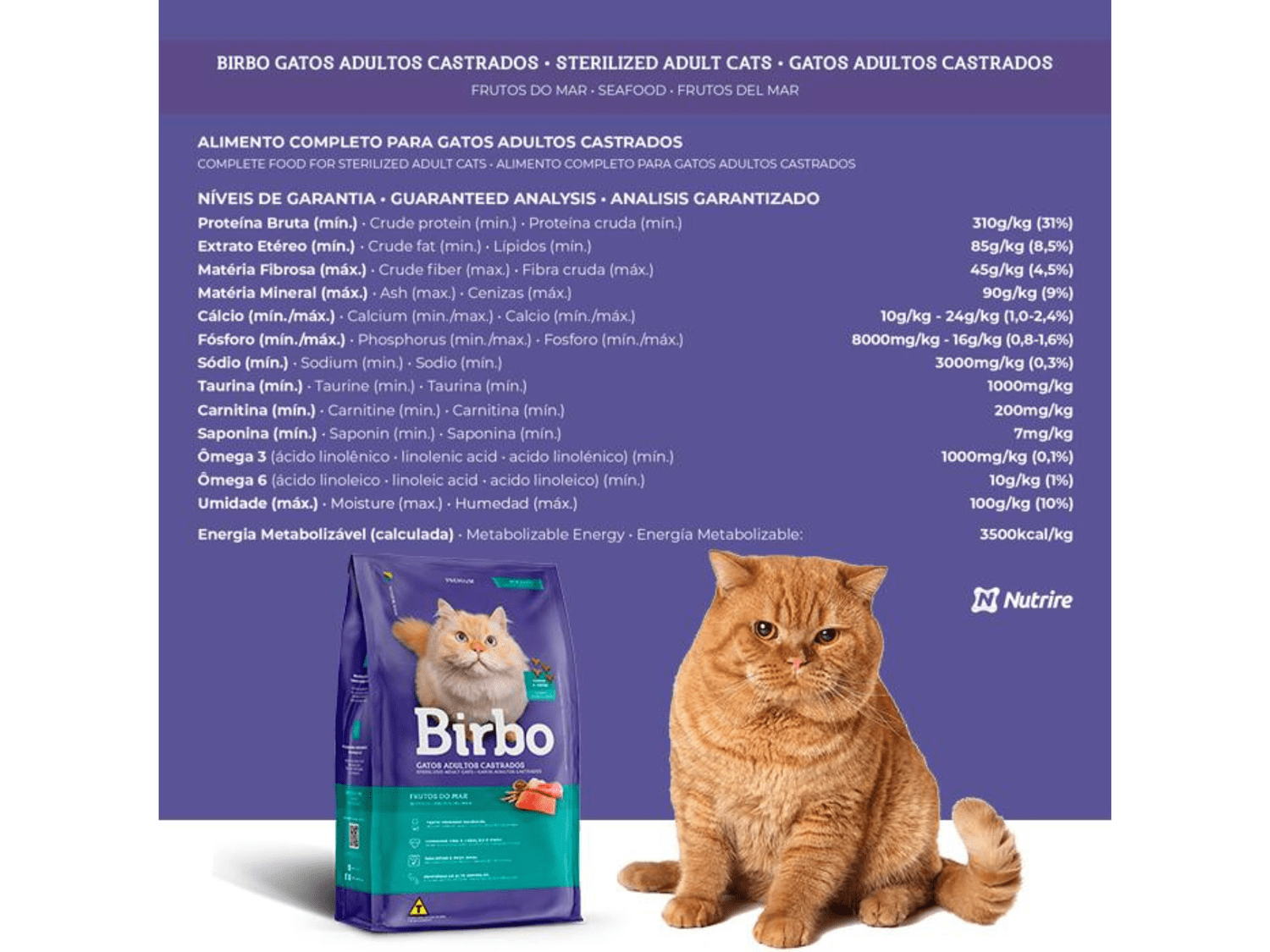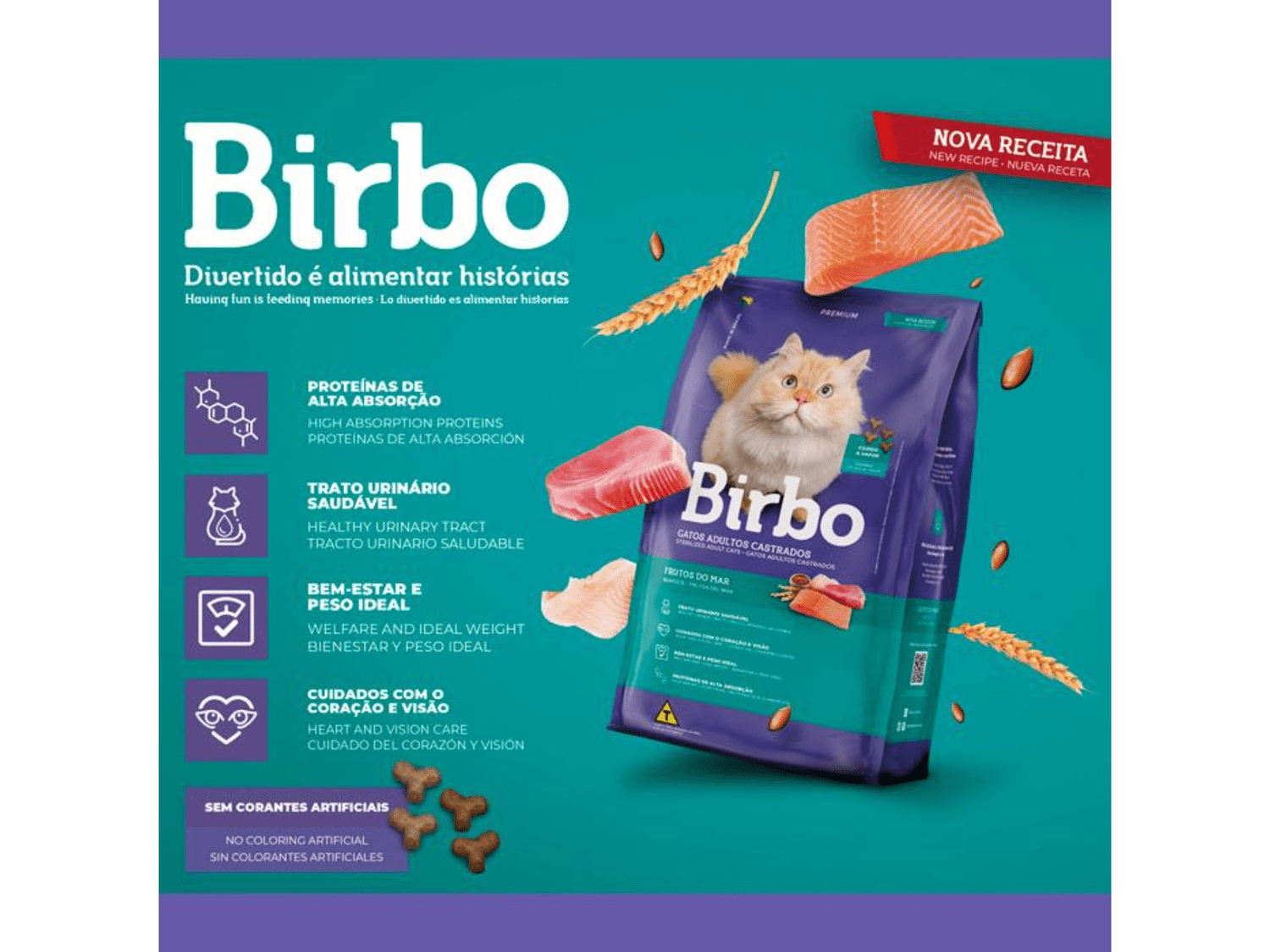 Ração Premium Seca Birbo Gatos Castrados Frutos do Mar 7Kg