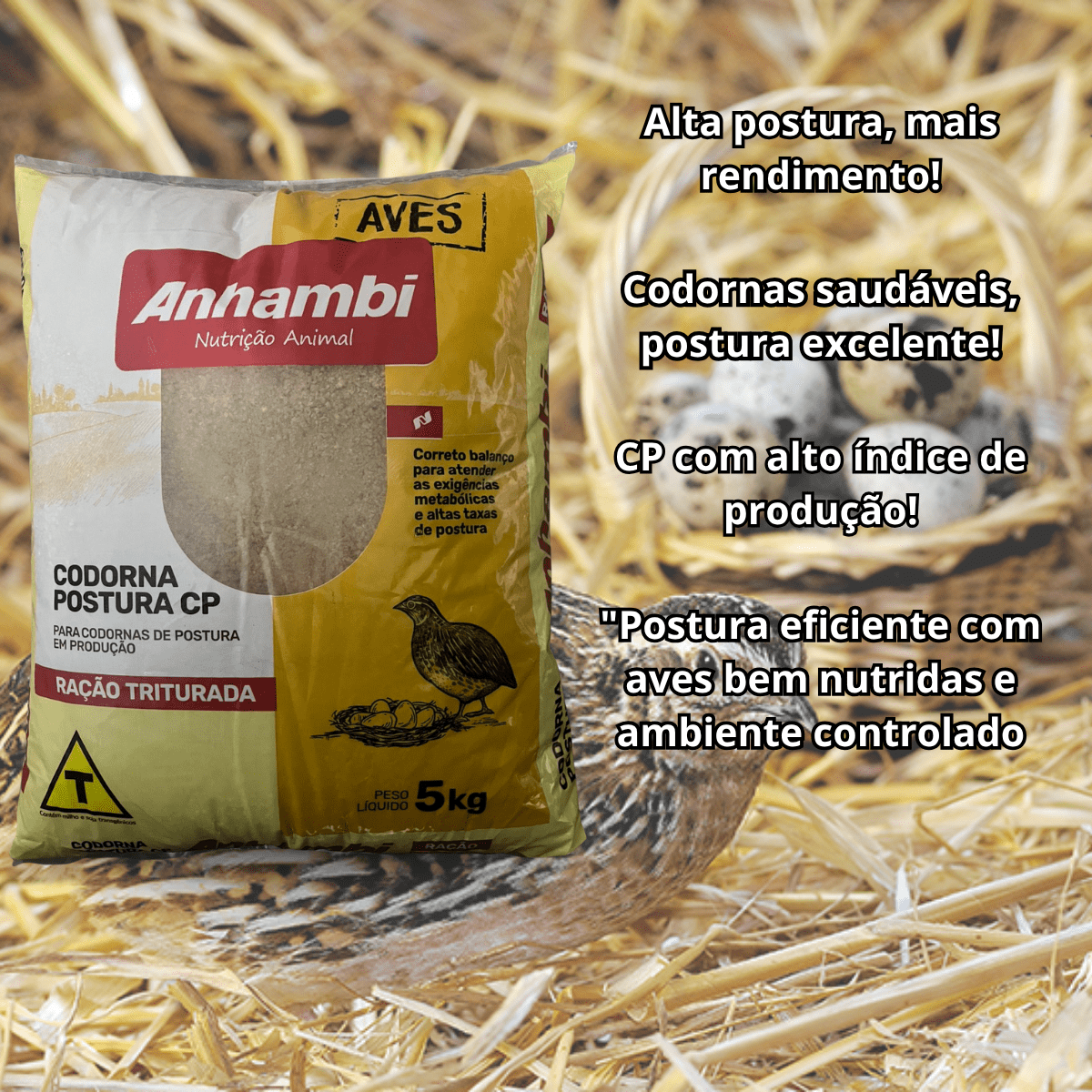 Ração balanceada e triturada, desenvolvida especialmente para codornas em fase de postura. Formulada com ingredientes de alta qualidade, proporciona os nutrientes essenciais para garantir uma produção de ovos eficiente, promovendo saúde, desempenho e longevidade das aves.