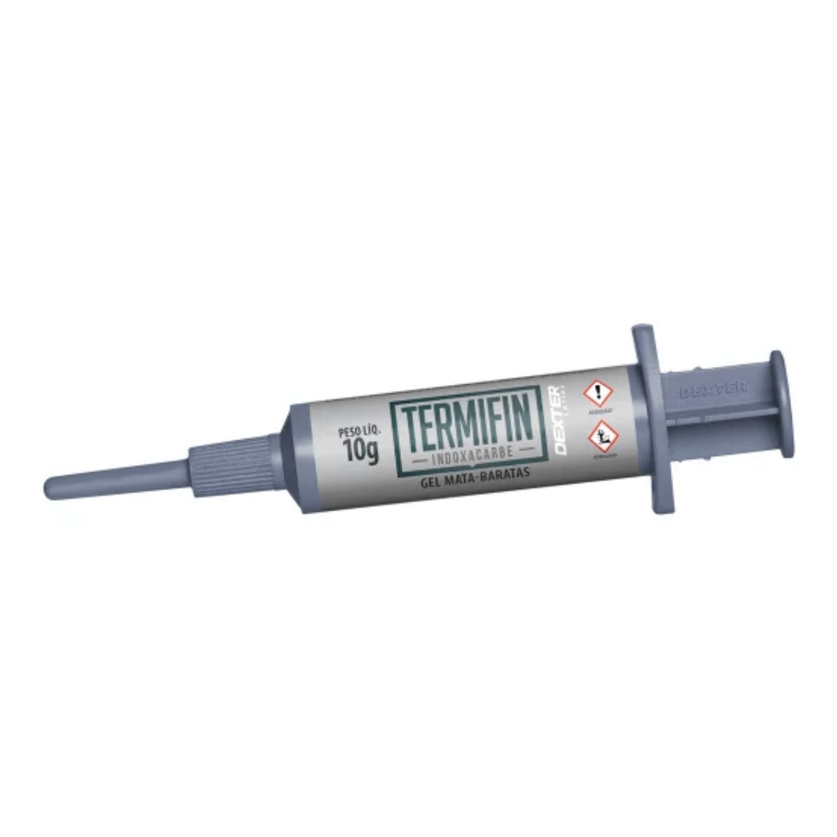 Termifin Gel é uma poderosa isca, de fácil aplicação, sem cheiro e de baixa toxidade, desenvolvida para o extermínio completo das baratas. A barata morre algumas horas após seu contato com a isca, dando tempo dela voltar para o ninho e contaminar toda a colônia. Desta forma, o extermínio total das baratas acontece em até 72 horas.