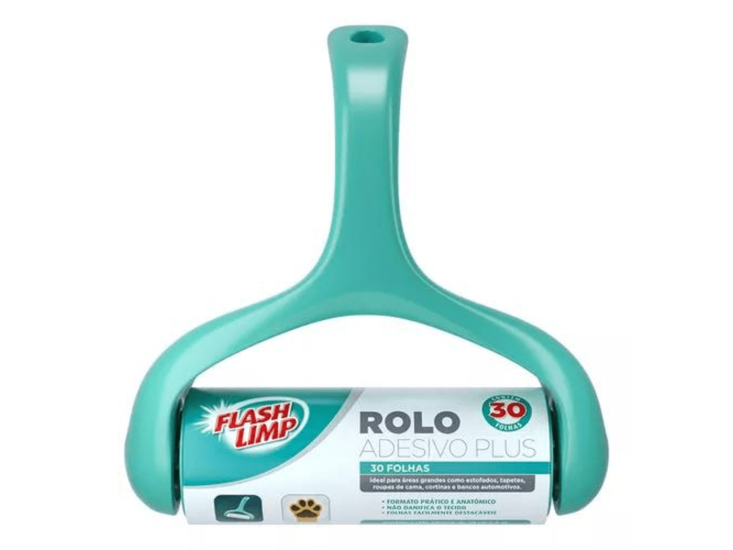 O Rolo Adesivo Plus 30 folhas da FlashLimp foi desenvolvido especialmente para deixar áreas grandes como estofados, tapetes, roupas de cama, cortinas e bancos automotivos, livres de cabelos, fiapos, poeira e pelos de animais.