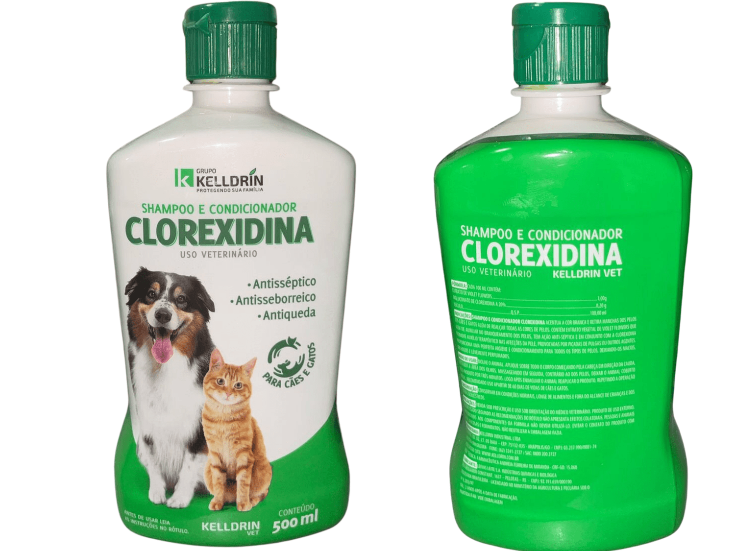 Higienização e Banho Para Cães E Gatos Shampoo e Condicionador Clorexidina da marca Kelldrin Esse Shampoo É Para Higienização e Banho para cães e gatos, e traz uma limpeza